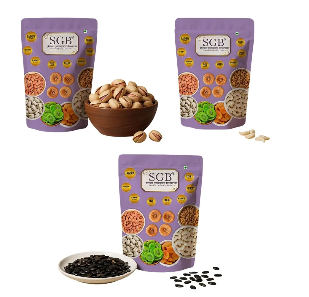 Buy premium quality Shree Ganapati Bhandar Big Size Pista + Broken Cashews + Watermelon Seed online at best price.